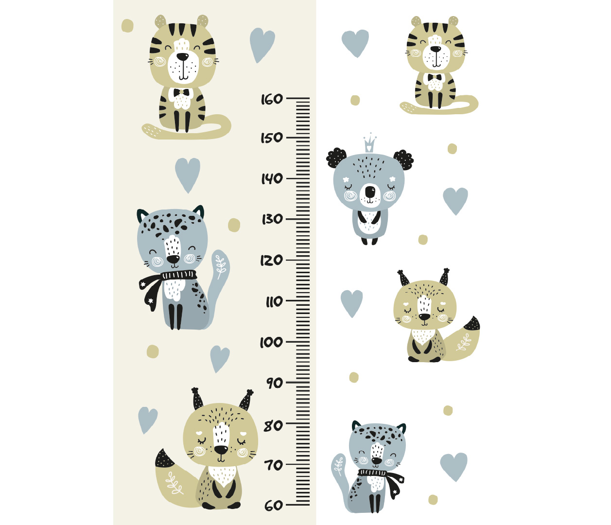 Proměňte dětský pokoj v dobrodružný svět se zvířecími kamarády! Tento originální dětský růstový metr s motivy tygra, leoparda, lišky a koaly přinese nejen krásnou dekoraci, ale i praktickou pomůcku pro sledování, jak vaše dítě roste.